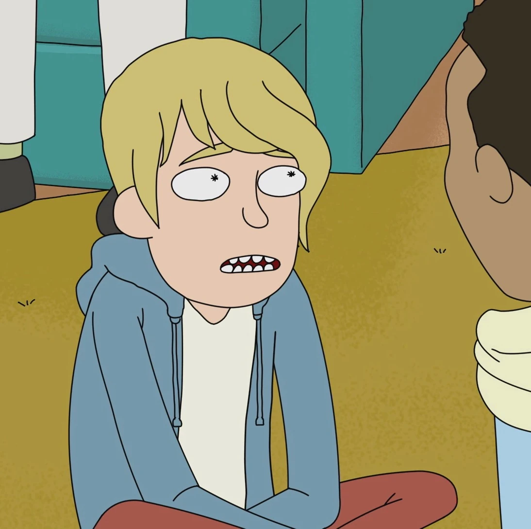 Bloom is an amoeba who is the co founder of anatomy park. Rick shrinks morty injecting him into a homeless man to save anatomy park. Eli lives next to summer in shabby suburbia during her brief stay in the mad max esque universe. Jerry tries to have a christmas free of electronic.