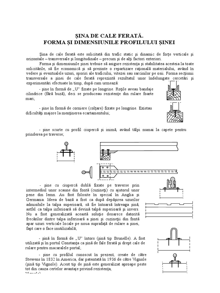 Forma si dimensiunile sinei de cale ferata trebuie sa asigure rezistentasi stabilitate fata de toate solicitarile.