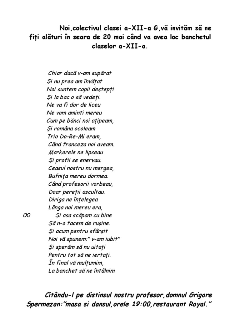 Text Invitatie Banchet Pentru Profesori